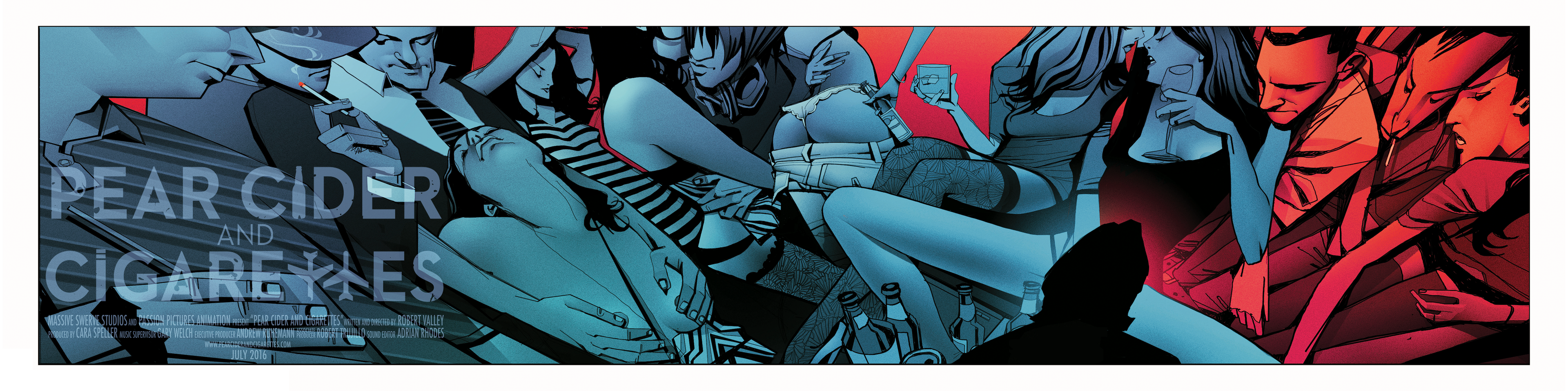 Artwork from Robert Valley’s Academy Award–nominated animated short Pear Cider and Cigarettes...